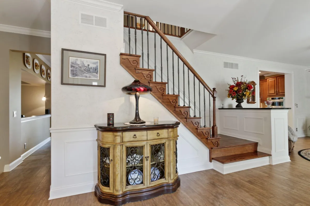 Welcome to Blanchard's Landing—a quiet suburb just minutes from highways, shopping, and recreation. Built in 2000, this spacious Woodbury home boasts character and quality craftsmanship, with porcelain and hardwood floors, detailed wood moldings, and custom cabinetry throughout. The open-concept living and dining area features soaring ceilings, while the oversized kitchen offers granite countertops, a massive island, double oven, and access to a patio overlooking a fenced yard with shed and hot tub. Upstairs includes 4 large bedrooms and 2 updated baths, including a master with an enclosed toilet. The fully finished basement is ideal for entertaining with a wet bar, pool table, shuffleboard, and abundant storage. A 2-car garage with built-in storage adds convenience. Perfect for first-time buyers or growing families—don’t miss this opportunity!